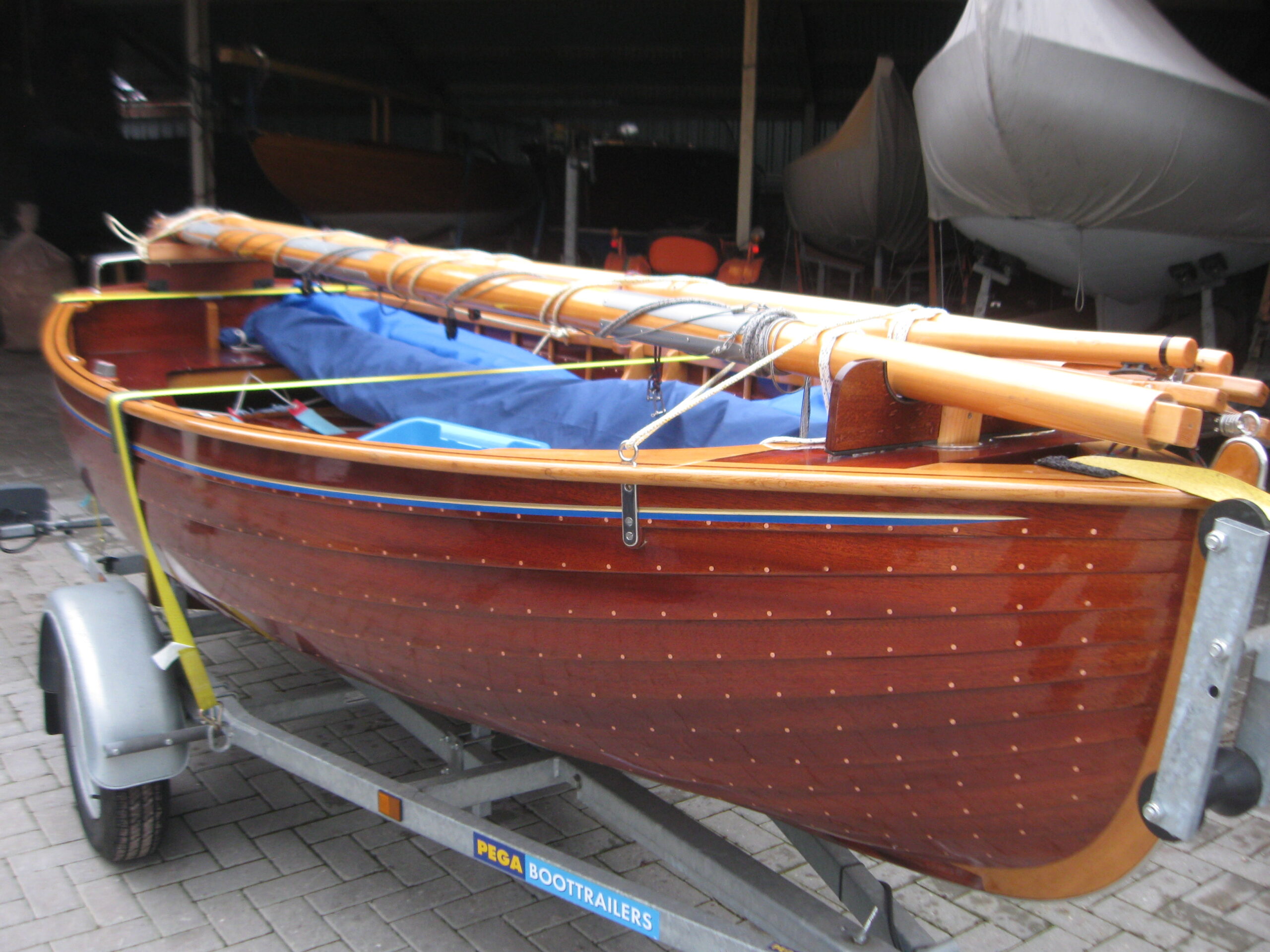 Incl Molenaars en De Vries zeil. Uitstekende Pega trailer voorzien van nieuwe banden.